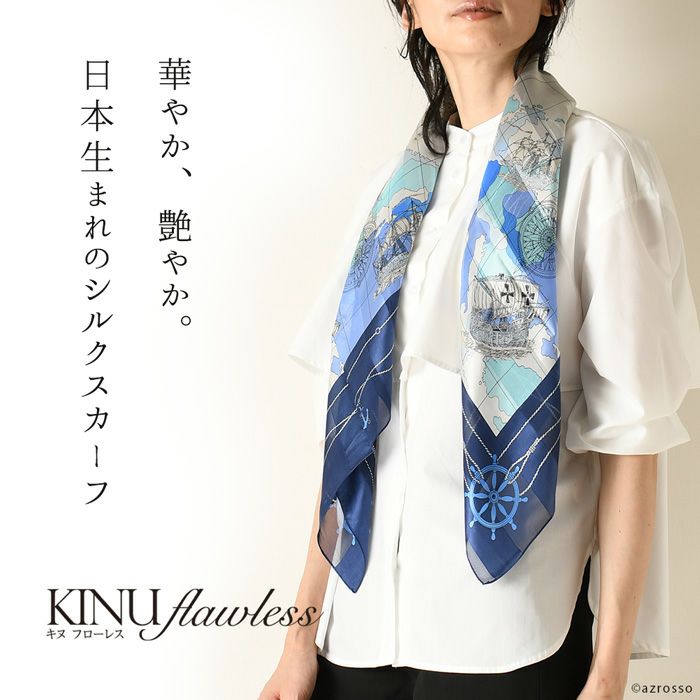 横浜スカーフ キヌフローレス ユーラシア 日本製 マリン柄 世界に誇るメイドインジャパンシルクスカーフ キヌフローレス ブランド紹介 スカーフの柄の説明