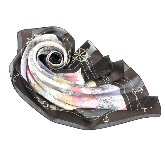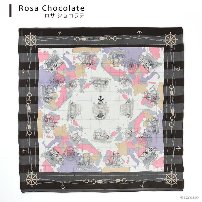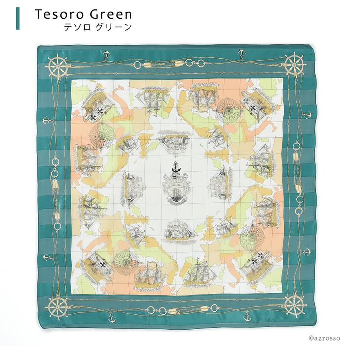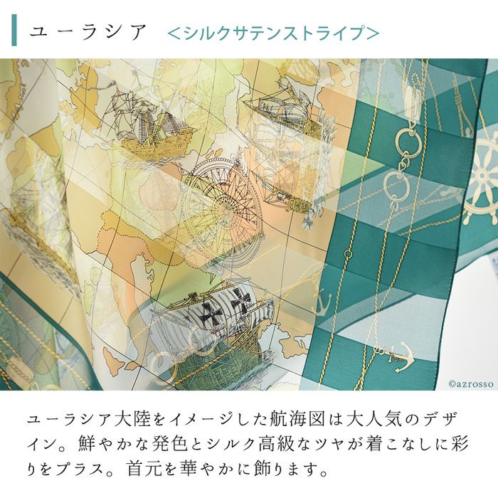 ユーラシア大陸をイメージした航海図は大人気のデザイン。鮮やかな発色とシルク高級なツヤが着こなしに彩りをプラス。首元を華やかに飾ります。
