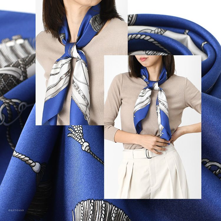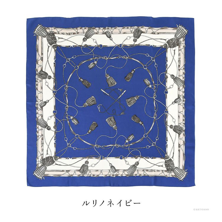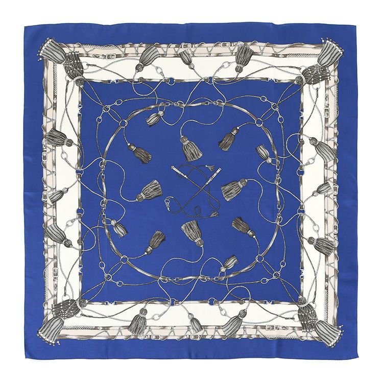 タッセル シルク ツイル スカーフ エルメス柄 馬具柄 シルク100% 90cm×90cm 正方形 日本製 横浜スカーフ【通常ネコポス配送】