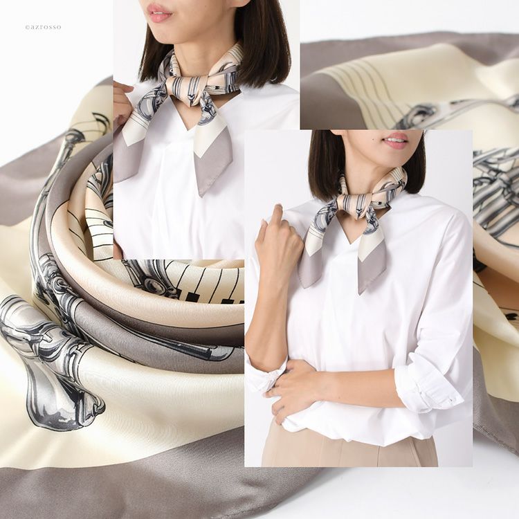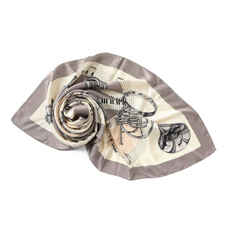 ジャズ シルク ツイル 楽器柄 シルク100% 90cm×90cm 日本製 横浜スカーフ【通常ネコポス配送】