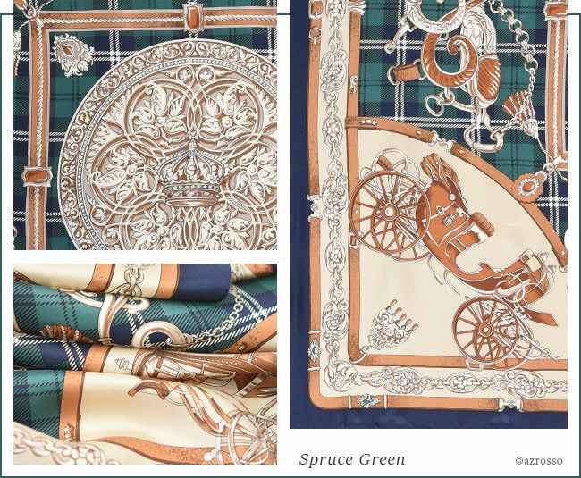 シルク スカーフ 大判 ツイル エルメス柄xタータンチェック 88x88 正方形 日本製 ブランド
