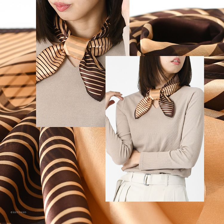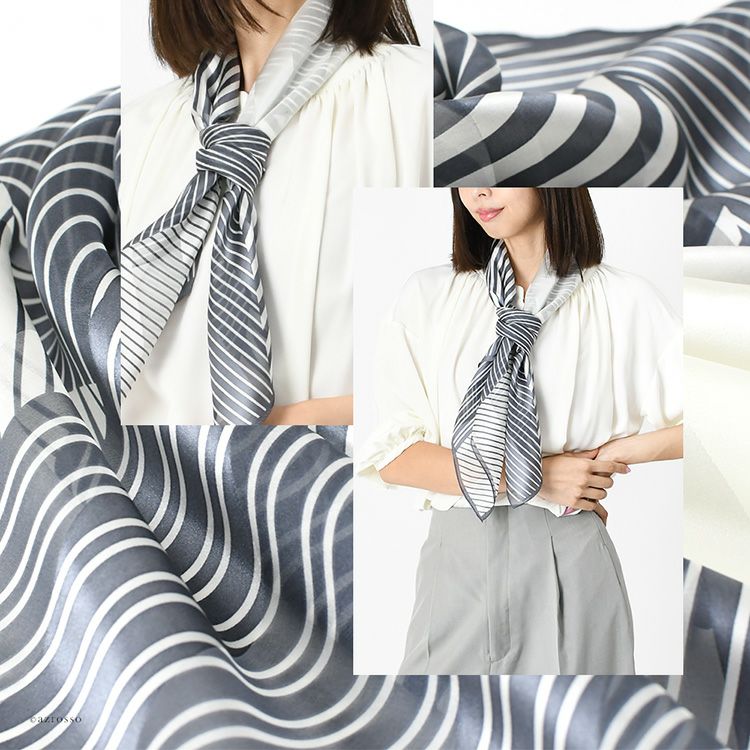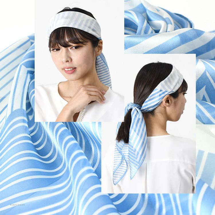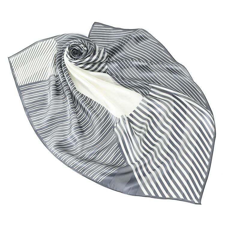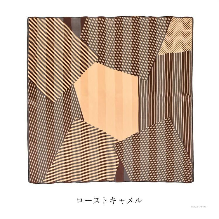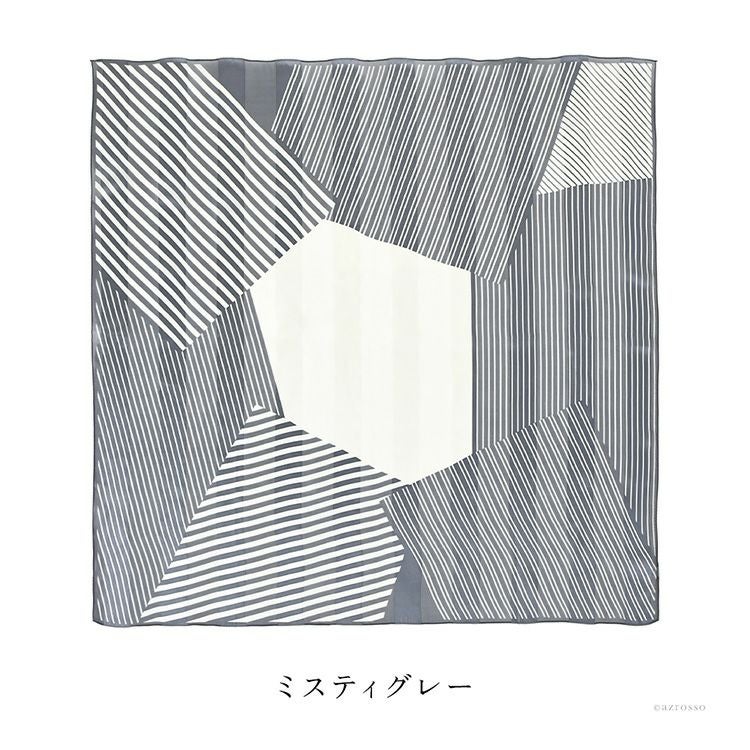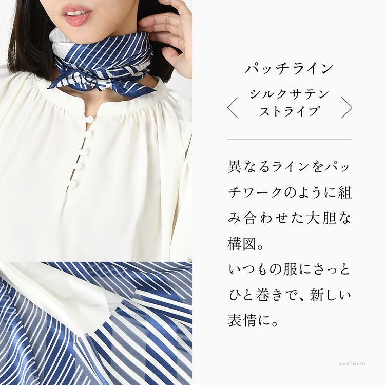 パッチライン シルク サテン スカーフ 幾何学模様柄 ストライプ シルク100% 90cm×90cm 正方形 日本製 横浜スカーフ【通常ネコポス配送】