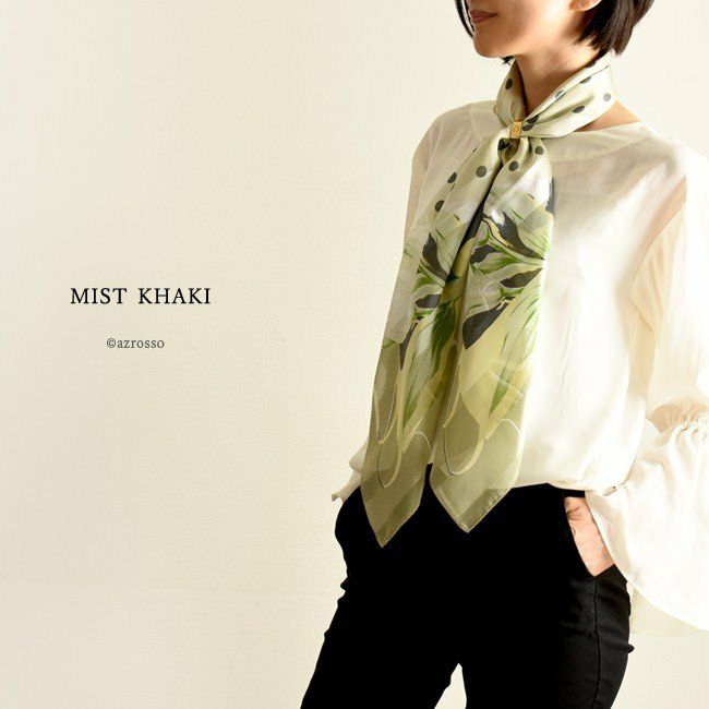 カラードット サテン シルクスカーフ 日本製 横浜スカーフ 水玉 レトロ柄 大判 かっこいい おしゃれ