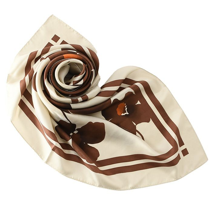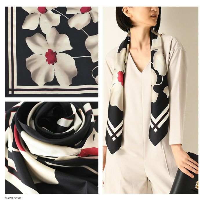 シルクスカーフ グランドポピー 90x90 大判 ツイル レトロで洗練の花柄 正方形 日本製 ブランド キヌフローレス