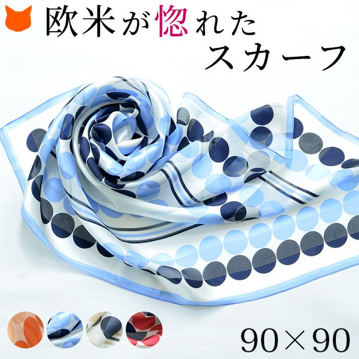 ボールポップ シルク100% サテン 横浜スカーフ 日本製 長方形 お洒落な水玉 ドット柄 春夏