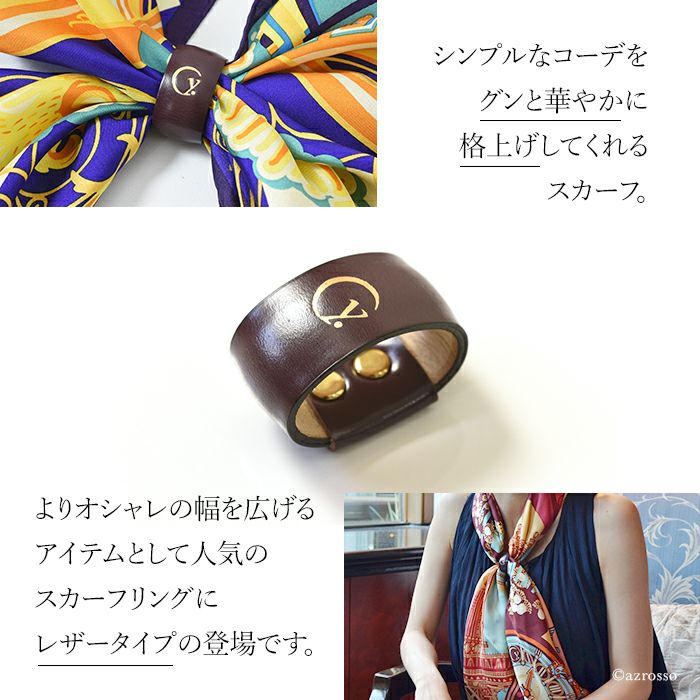 本革 スカーフリング(スカーフ留め) .Y(ドットワイ)ブランド シルクスカーフに合う上質素材 日本製