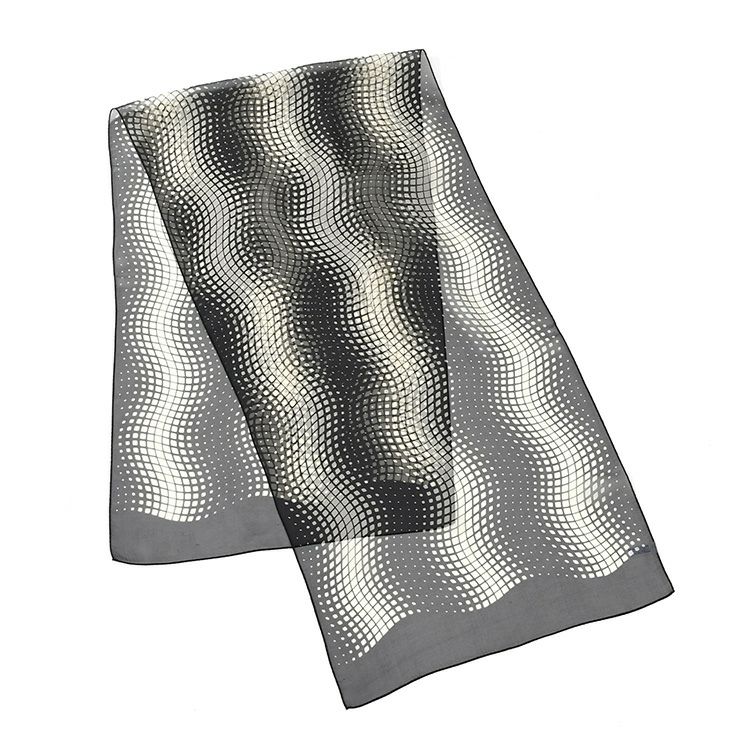 日本製・シルク100%スカーフ。横浜スカーフブランドKINU flawless(キヌ フローレス)の幾何学模様柄シルクスカーフ「市松カット」。女性への誕生日ギフトにもおすすめの大判ストール風スカーフ 市松カット シルク シフォン ストール 幾何学模様柄 シルク100% 95cm×170cm 長方形 日本製 横浜スカーフ 【通常ネコポス配送】