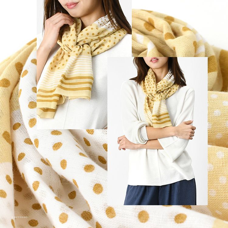 日本製・綿麻スカーフ。横浜スカーフブランドKINU flawless(キヌ フローレス)の幾何学模様柄 ドット 水玉 コットンリネンストール「ブリーズライン」。女性への誕生日ギフトにもおすすめの大判ストール風スカーフ ブリーズライン コットン リネン ストール 幾何学模様柄 ドット 水玉 綿麻 55cm×180cm 長方形 日本製 横浜スカーフ【通常ネコポス配送】