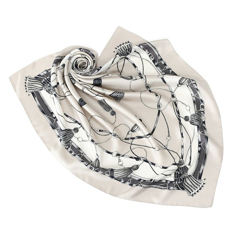 日本製・シルク100%スカーフ。横浜スカーフブランドKINU flawless(キヌ フローレス)のエルメス柄 馬具柄シルクスカーフ「タッセル」。誕生日ギフトにもおすすめの大判正方形スカーフ タッセル シルク ツイル スカーフ エルメス柄 馬具柄 シルク100% 90cm×90cm 正方形 日本製 横浜スカーフ【通常ネコポス配送】