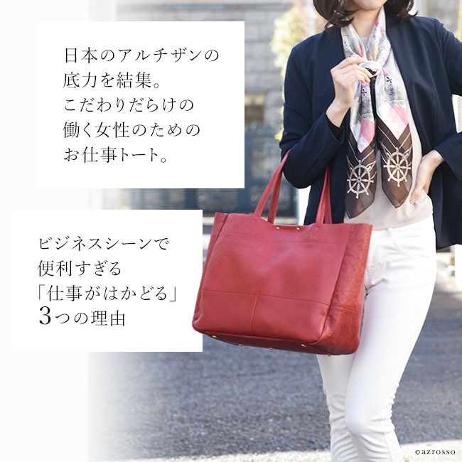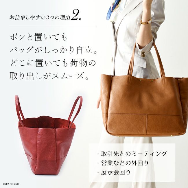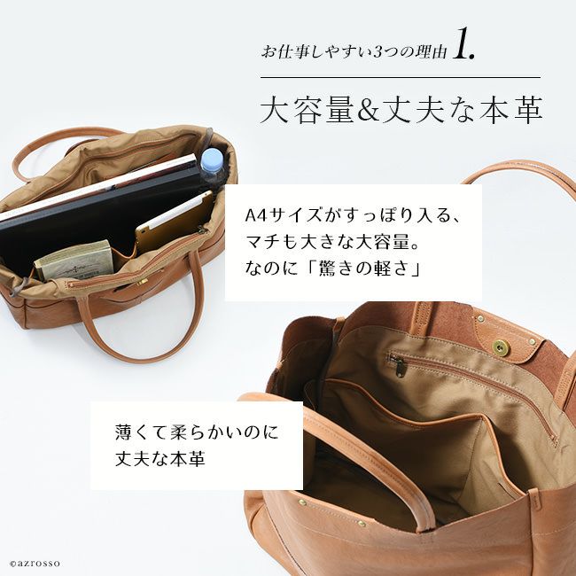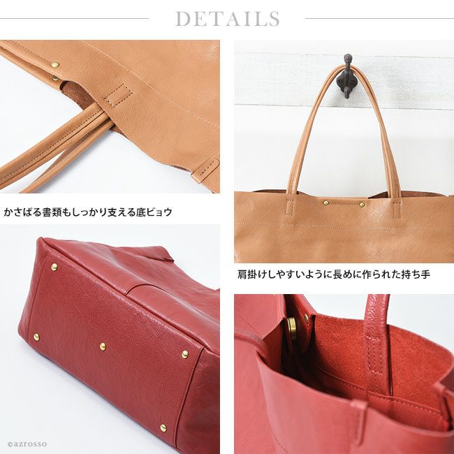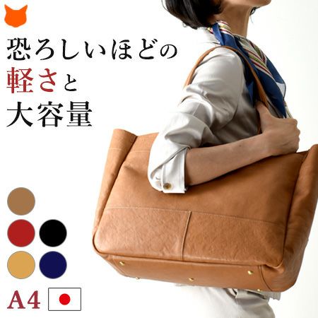 超 軽量 本革 レザー トートバッグ 日本製 底鋲 つきで 自立 A4 対応 レディース コモドプラスト