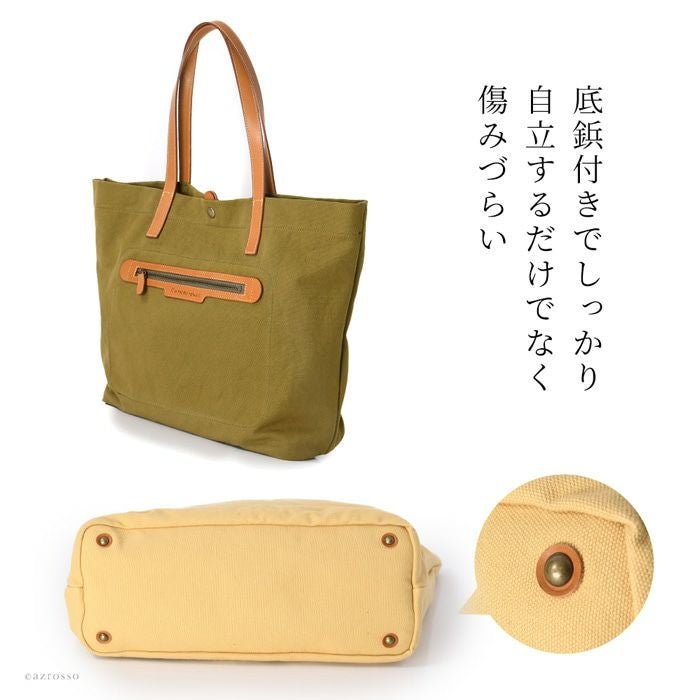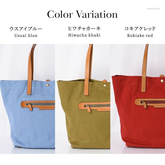 日本製 キャンバス トートバッグ 帆布 A4 500g以下 軽量 大容量 レザー 本革 軽い ブラック カーキ ブルー レッド ベージュ コモドプラスト