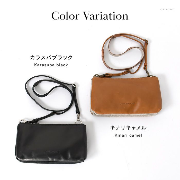 ミニ ショルダーバッグ レザー 本革 リネン 帆布 お財布ポシェット 2層収納 ブラック キャメル ブラウン 日本製 ブランド コモドプラスト C'omodo+plust バートン ミニバッグ