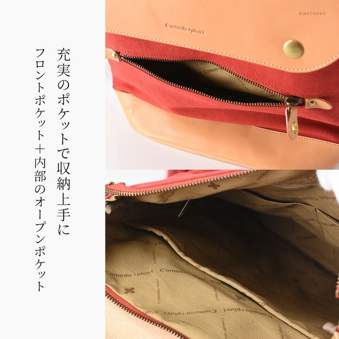 本革×綿 リュック a4収納 大容量 フラップ リュックサック レザー 日本製 バッグ ブランド コモドプラスト C'omodo+plust ブラック レッド カーキ ベージュ