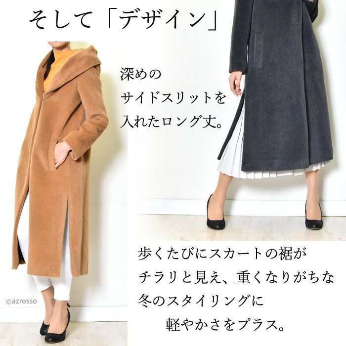 アルパカ ヴァージンウール ロングコート フード付き レディース アウター ブランド MAISON LENER メゾン レネール ネイビー グレー キャメル シャギーコート