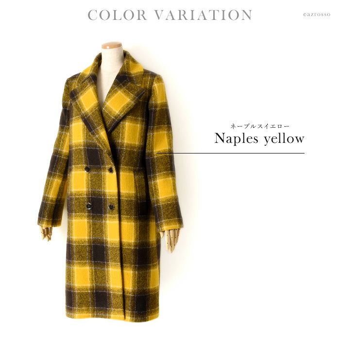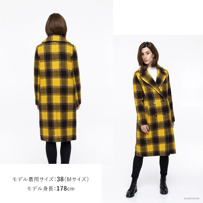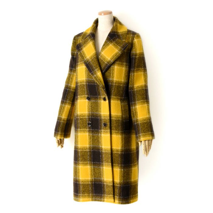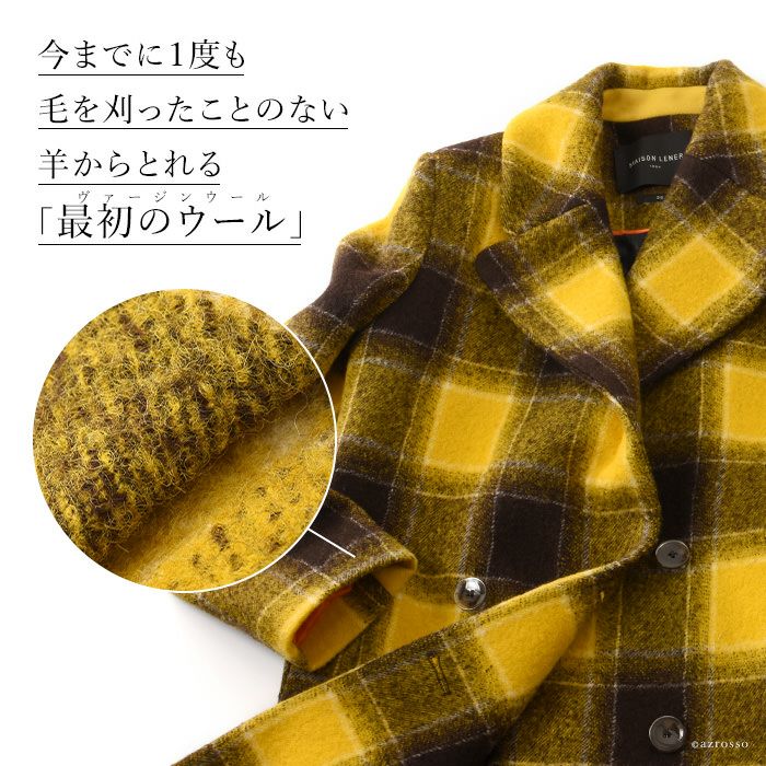 ヴァージンウール イエロー チェック 柄 コート ロングコート レディース アウター ブランド MAISON LENER メゾン レネール