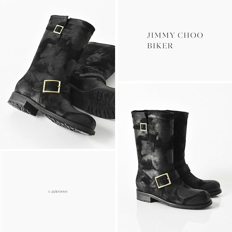 スエードレザー エンジニアブーツ 黒 迷彩 ワックス加工 ショートブーツ イタリア製 ブランド JIMMY CHOO BIKER 正規品 ジミーチュウ バイカー レディース