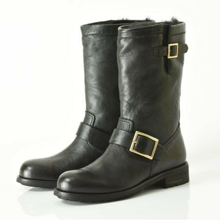 23cm-24.5cm|3cmヒール ファー付きショートブーツ バイカー BIKER エンジニアブーツ ジミーチュウ JIMMY CHOO 黒 ブラック 正規品 ゴツめブーツ