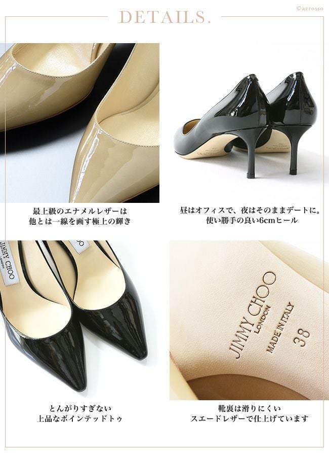 多くのセレブリティーを虜にする現代のシンデレラブランドJIMMY CHOO。ROMY(ロミー)は、ジミーチュウの十八番ともいえるポインテッドトゥに、細めのヒールでスパイシーな印象に仕上げた人気の1足。