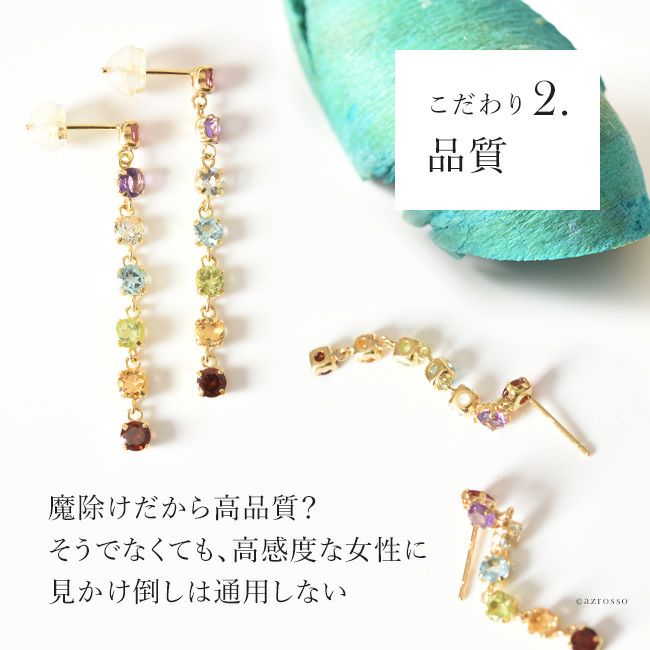 18Kとカラーストーンが織りなす繊細なネックレスやイヤリングそしてリングは、働く女性に華やかさと癒しを与えます。