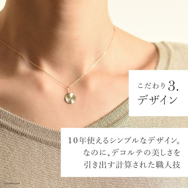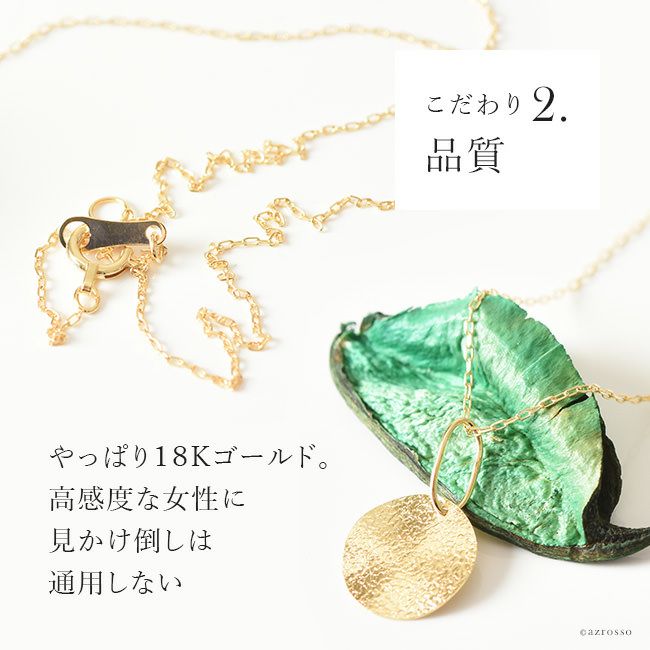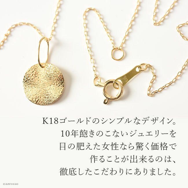ラウンド プレート ゴールド ネックレス 18k イエロー ゴールド K18YG シンプル コタラッテ 日本製 40cm ロング 3cm アジャスター 仕事 通勤 プレゼント