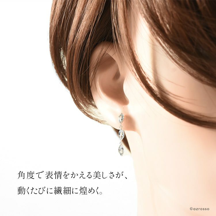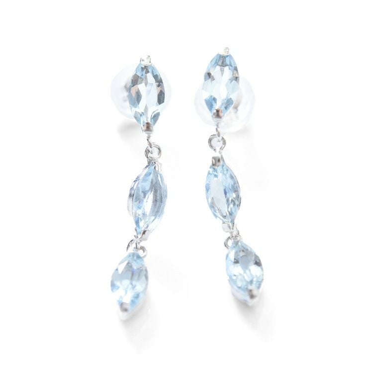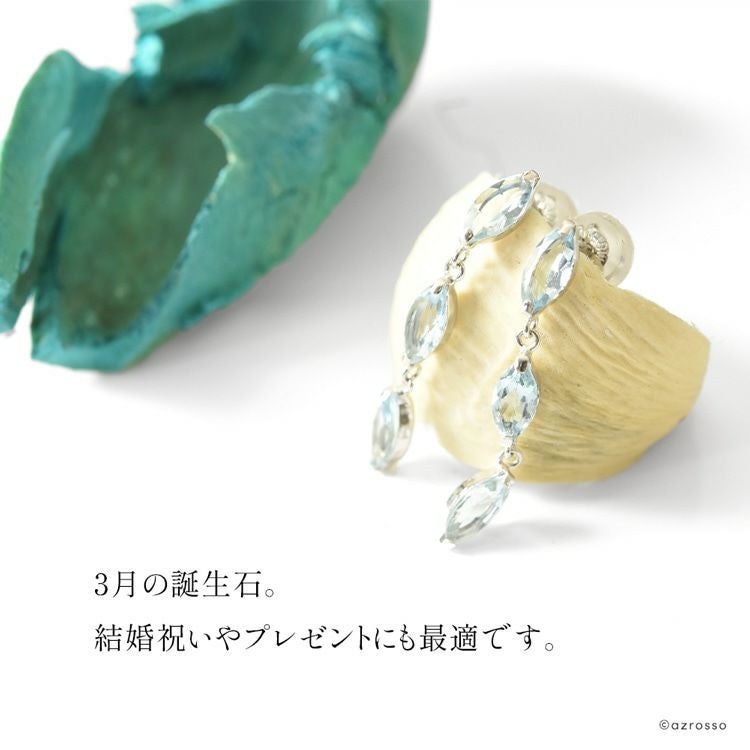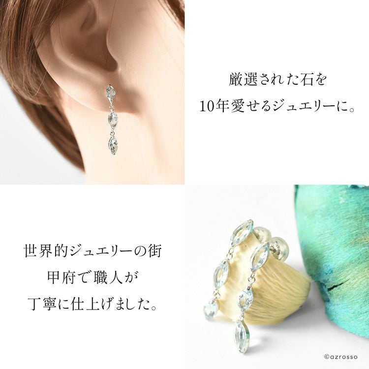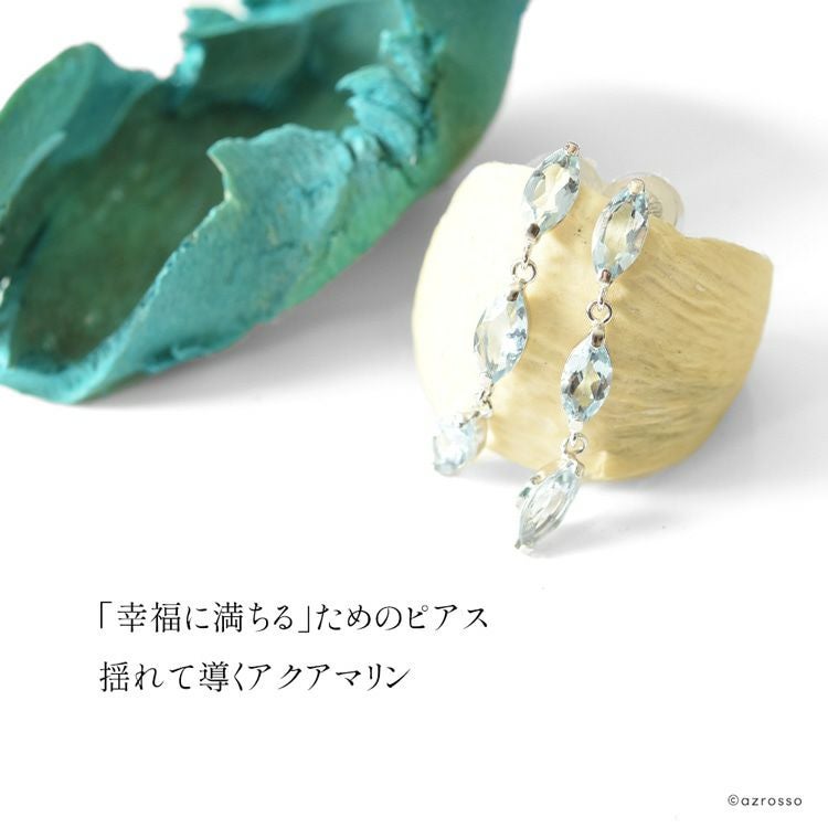3連 天然 アクアマリン ピアス 1ct 18k ホワイト ゴールド 揺れる K18WG コタラッテ 日本製 3月 誕生石 プレゼント