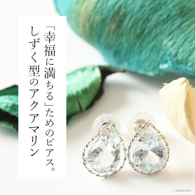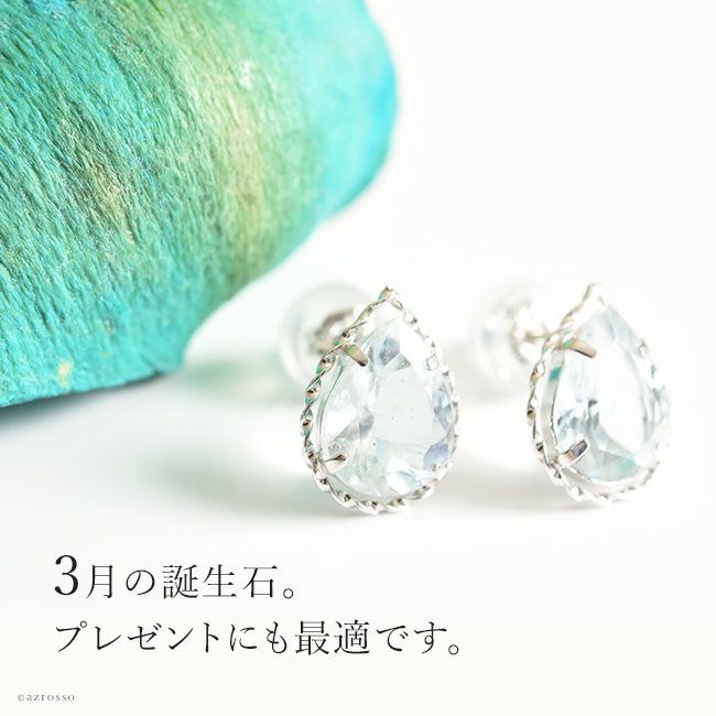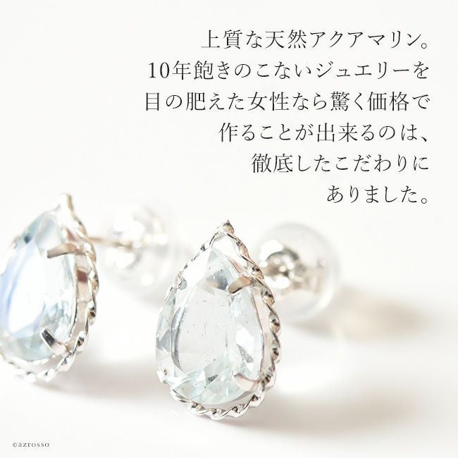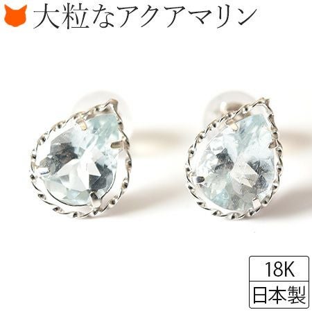 天然 アクアマリン ティアドロップ スタッド ピアス 1.6ct しずく型 18k ホワイト ゴールド K18WG コタラッテ 日本製 3月 誕生石 プレゼント