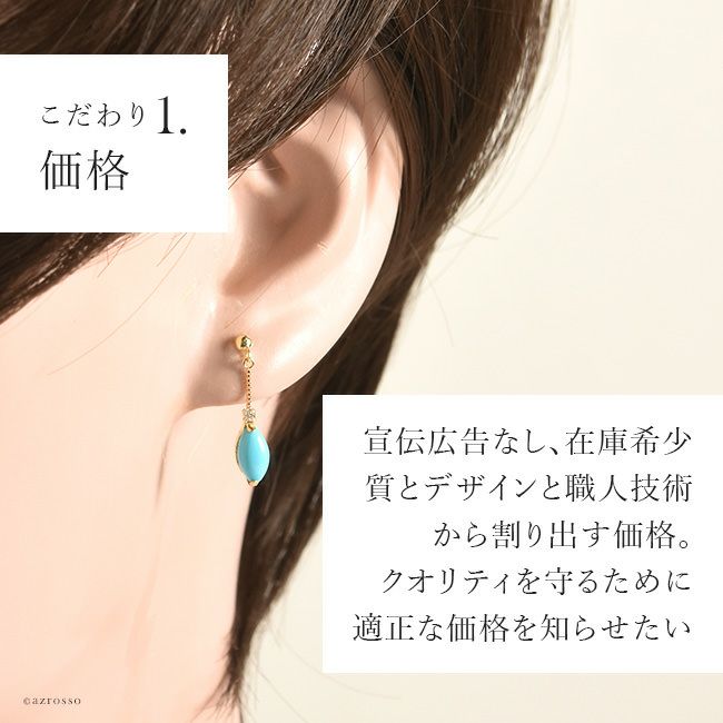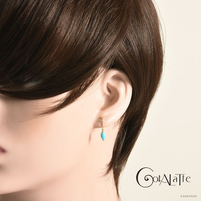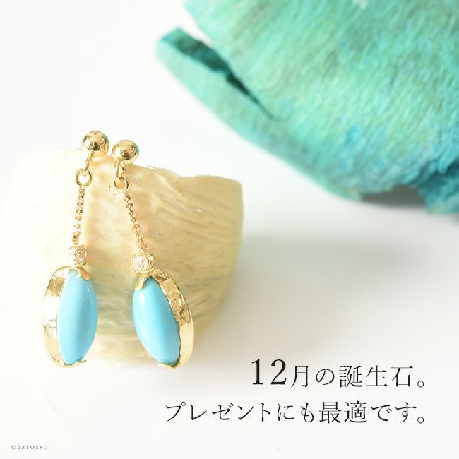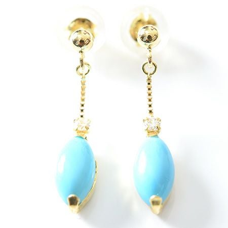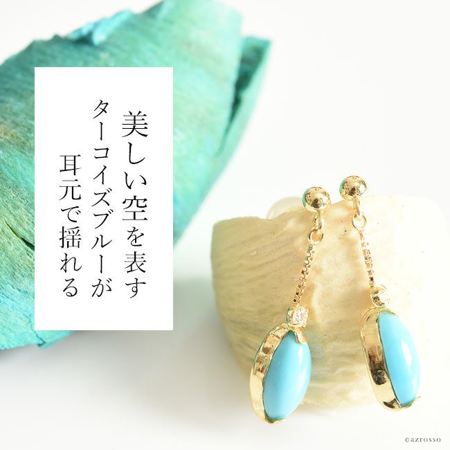 ターコイズ ブルー ダイヤモンド ピアス 18k イエロー ゴールド シンプル 揺れる チェーン トルコ石 K18YG コタラッテ 日本製 プレゼント