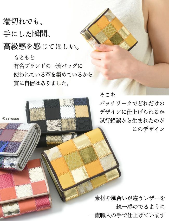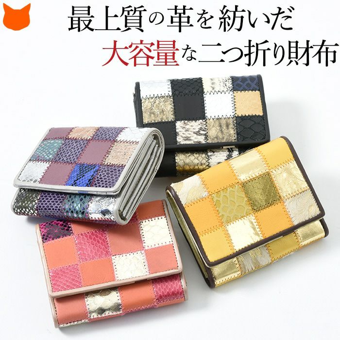 パッチワーク 折財布 本革 レディース 二つ折り レディース イエロー ブラック ピンク ブルー ゴールド シルバー Cappuccetto Violetto カプチェットヴィオレット