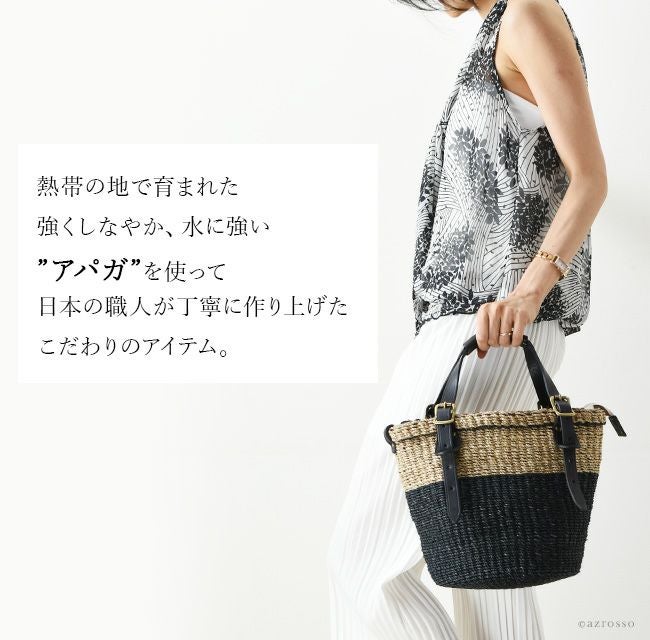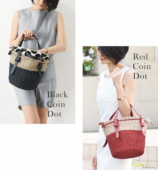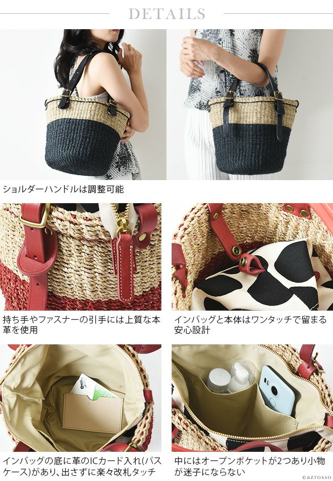 かごバッグ レディース 夏素材 日本製 本革使用 外せる インバッグ ブラック レッド