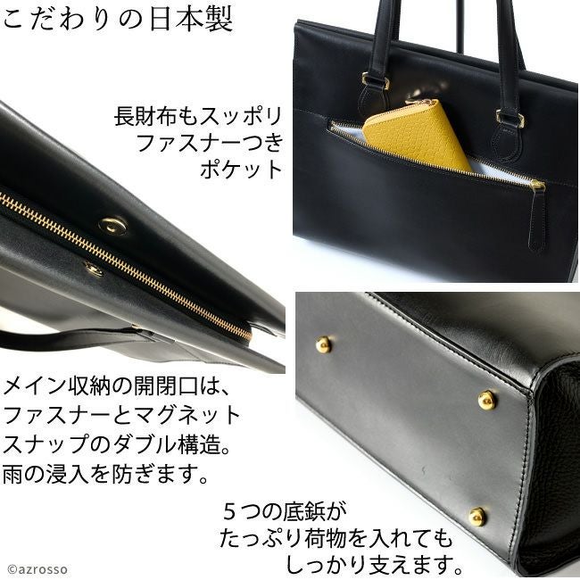 折りたたみできる本革ビジネストートバッグ