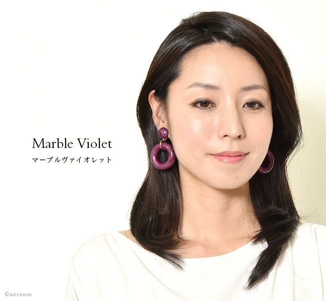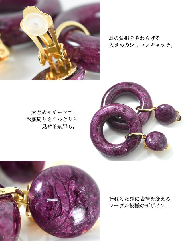 揺れるフープイヤリング シリコンだから痛くない 大ぶり ノンホールピアス フランス製 ブランド 大きい パープル 紫