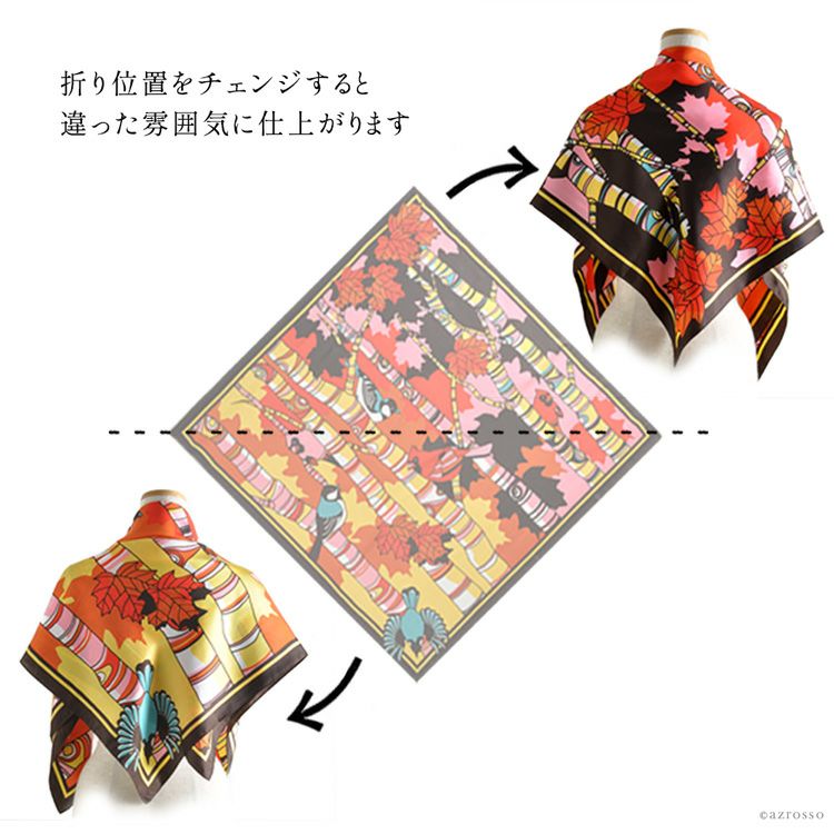 シルクスカーフ 日本製 大判 90×90 シルク100 正方形 高級スカーフ ブランド 横浜スカーフ シルクツイル プレゼント ギフト レディース 鳥 柄