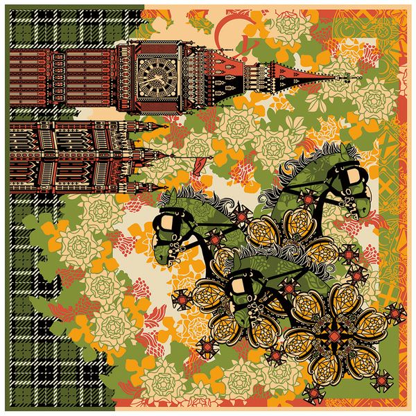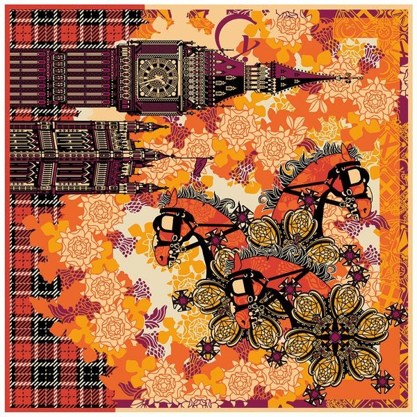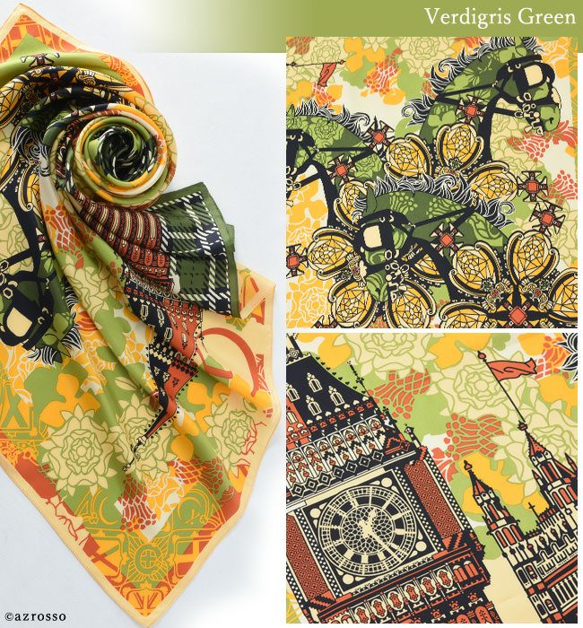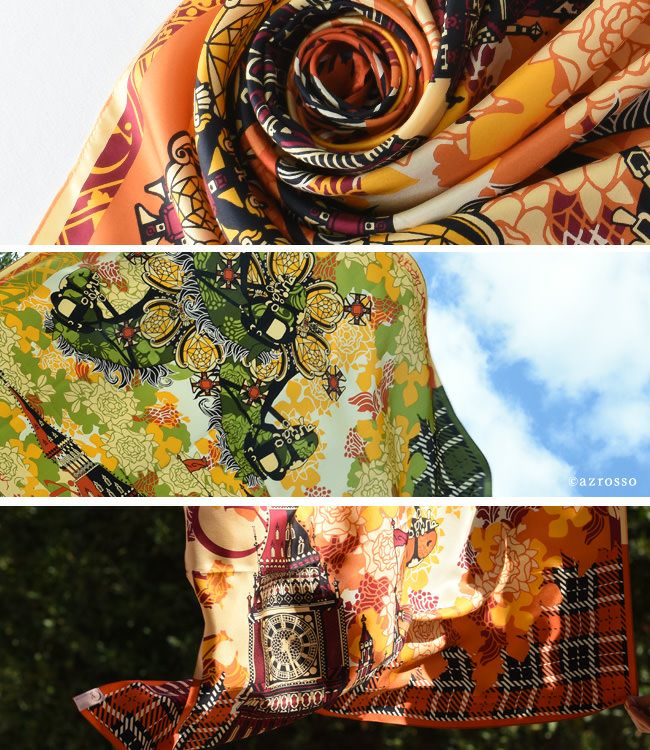 華やかなりしロンドン .Y ドットワイ シルクツイルスカーフ 横浜スカーフ 日本製 タータンチェック