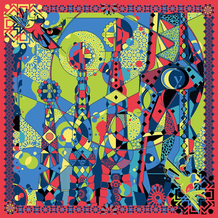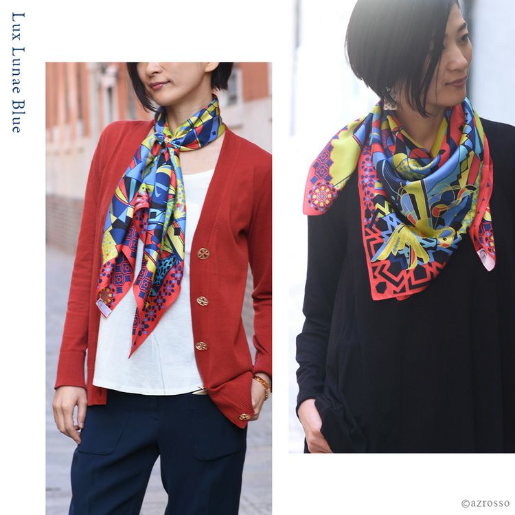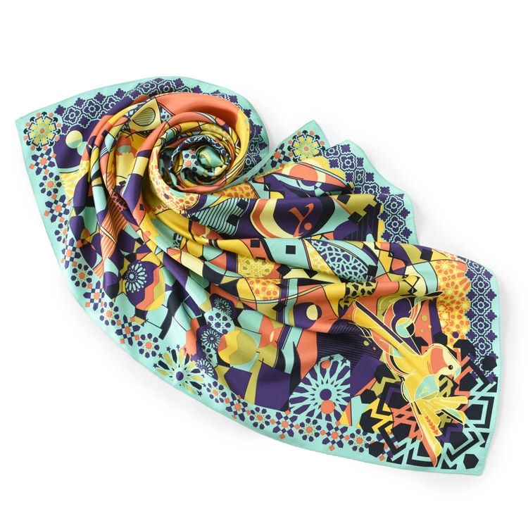 迷宮のバルセロナ .Y ドットワイ シルクツイルスカーフ 横浜スカーフ 日本製