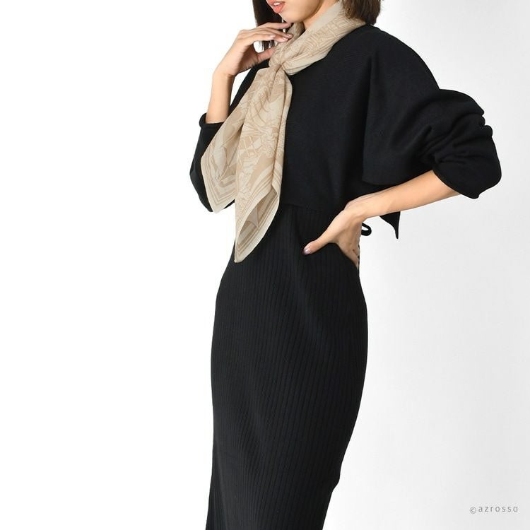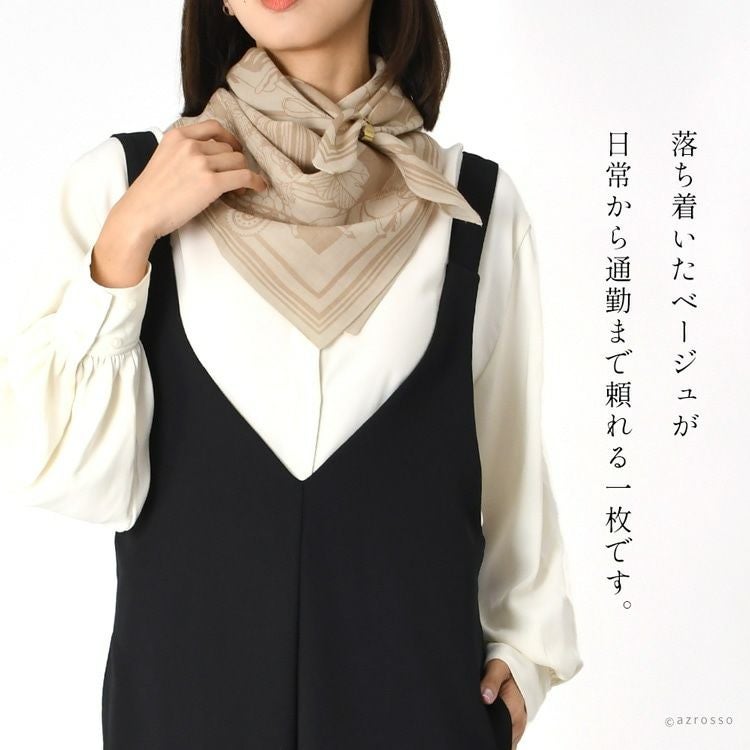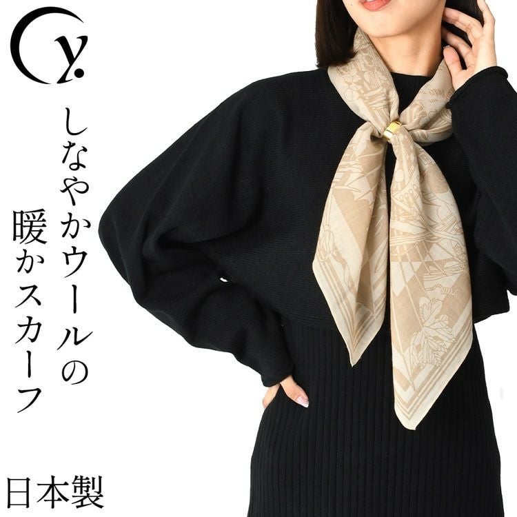 トスカーナ 芳醇な大地 ドットワイ ウールスカーフ 日本製 横浜スカーフ ブランド ウール100 薄手 正方形 トープベージュ