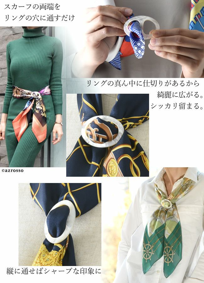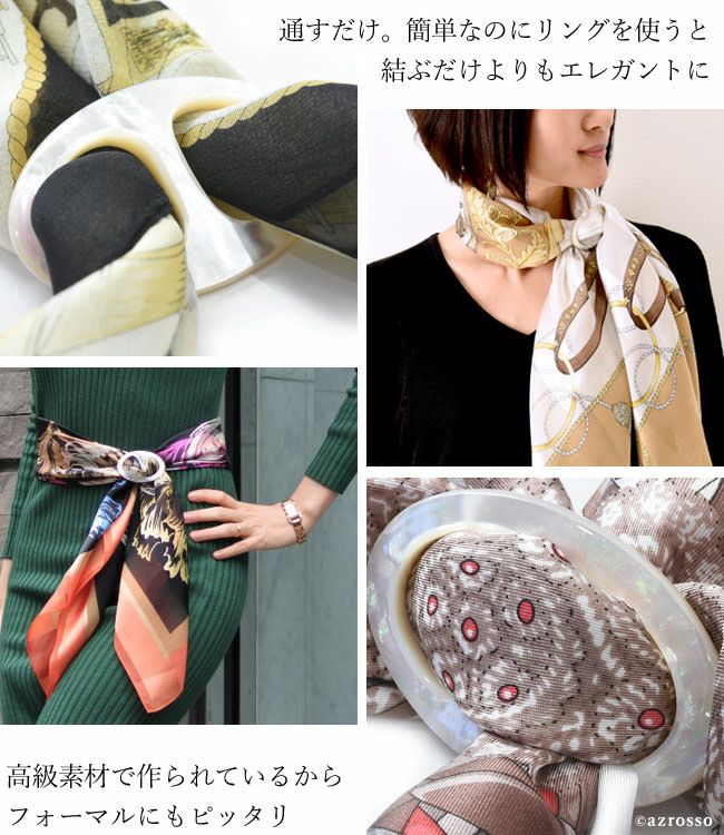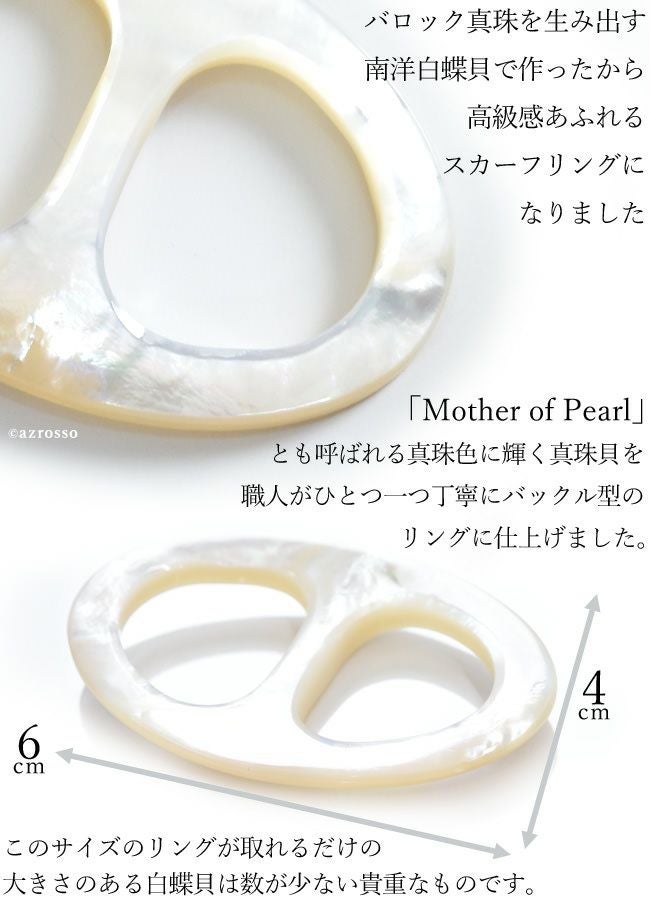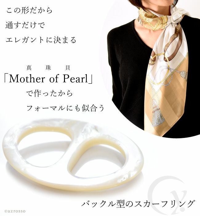マザー オブ パールのスカーフ留め スカーフリング エレガント 日本製 ブランド 白 ホワイト