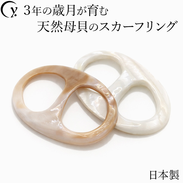 こちらの天然貝を切り出してつくったスカーフリングは、「いつもの装いに品格を添えたい」と願う大人の女性にこそふさわしいアイテム。