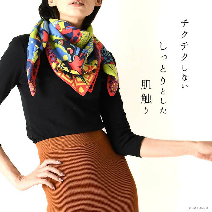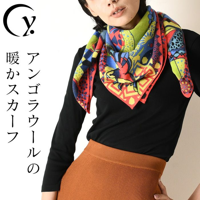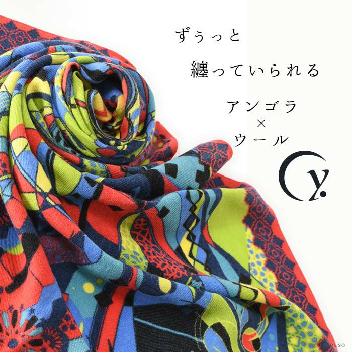 【7790円お得キャンペーン開催中】ドットワイ 秋冬スカーフ アンゴラ ウール 正方形 ストール 迷宮のバルセロナ サクラダファミリア 日本製