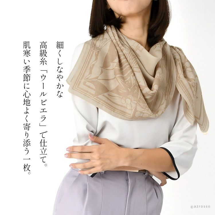 トスカーナ 芳醇な大地 ドットワイ ウールスカーフ 日本製 横浜スカーフ ブランド ウール100 薄手 正方形 トープベージュ