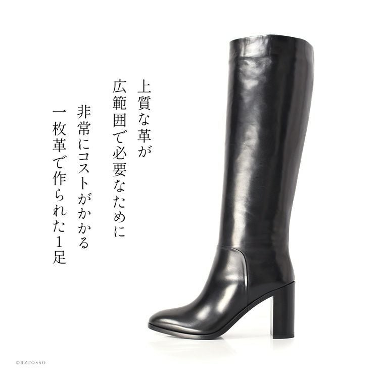 つやつやのレザーの良さをを余すことなくブーツに仕立て、ジッパーどころか縫い目さえありません。