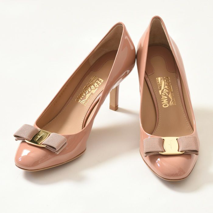 ※特価の為返品・キャンセル・交換無料サービス対応不可。※交換対応は、通常販売時のお買い物通りのご案内です。※サイズ交換希望で、ご交換希望サイズが欠品の場合は返品不可 残26.5cmのみ│靴の女王の定番パンプス。サルヴァトーレ・フェラガモ(Salvatore Ferragamo)【CARLA70】カルラ ヒールパンプス リボン ヴァラ リボンパンプス ベージュ エナメル ハイヒール パテントレザー レディース ビスク フェラガモ 靴 新作 正規品 春パンプス 大きいサイズ クイーンサイズ