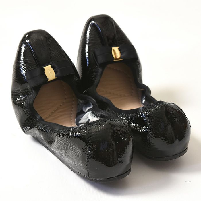 ※特価の為返品・キャンセル・交換無料サービス対応不可。※交換対応は、通常販売時のお買い物通りのご案内です。※サイズ交換希望で、ご交換希望サイズが欠品の場合は返品不可 残25.5cm│サルヴァトーレ フェラガモ Salvatore Ferragamo NINNA エナメル フラットパンプス