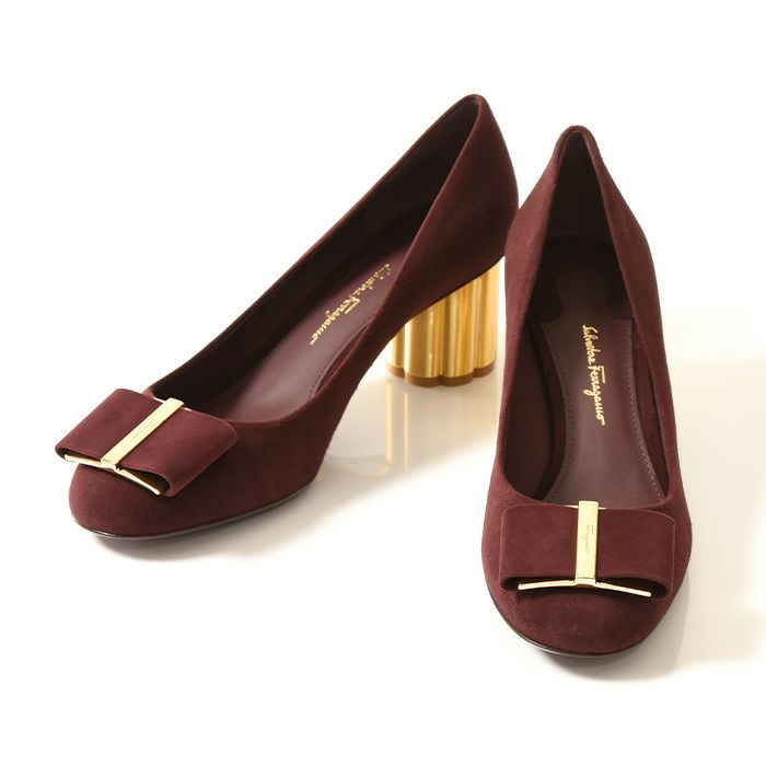 ※特価の為返品・キャンセル・交換無料サービス対応不可。※交換対応は、通常販売時のお買い物通りのご案内です。※サイズ交換希望で、ご交換希望サイズが欠品の場合は返品不可 残23cm-26cm|フェラガモ カプア パンプス スエード レザー チャンキーヒール ボルドー レッド ブルー 青 Salvatore Ferragamo レディース 正規品 CAPUA