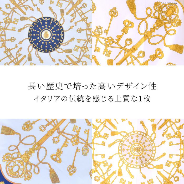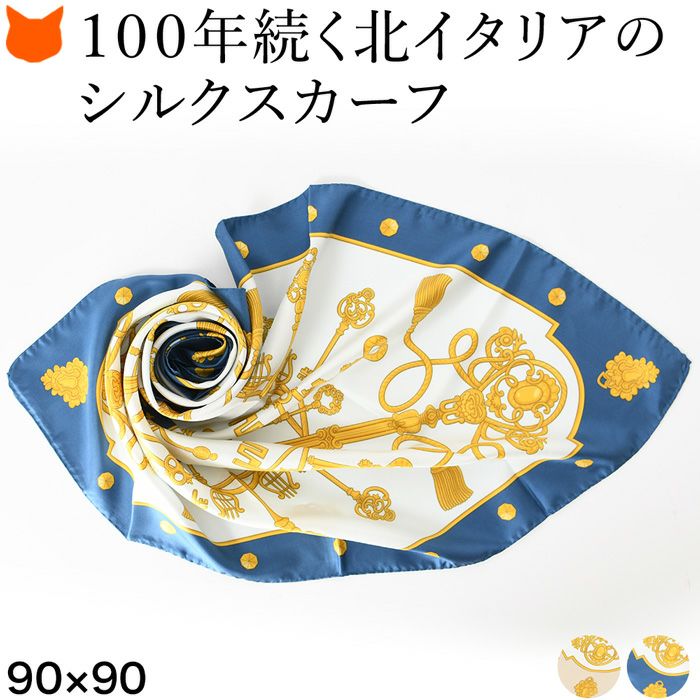 タッセル柄 鍵 シルクツイル フレイコモ スカーフ 正方形 大判 88x88シルク100% イタリア製 シルクスカーフ 巻き方や結び方を紹介 敬老の日 母の日 誕生日 プレゼント freycomo