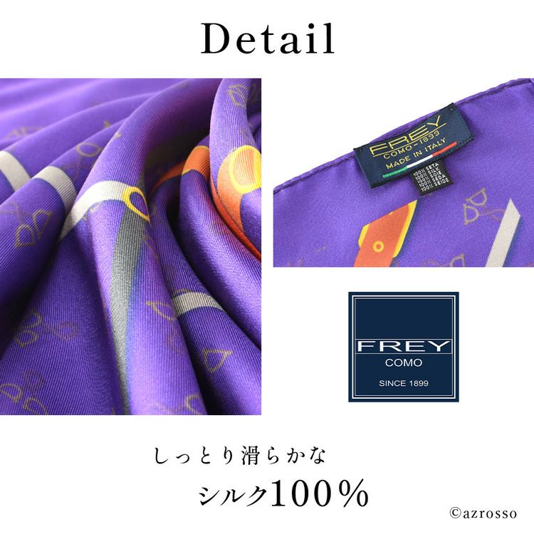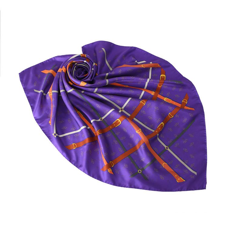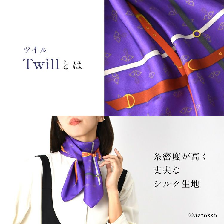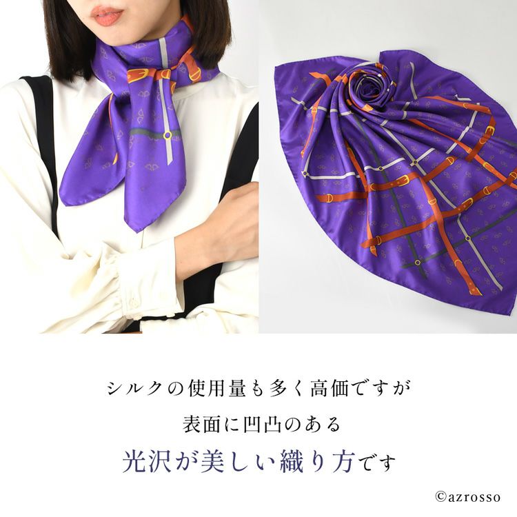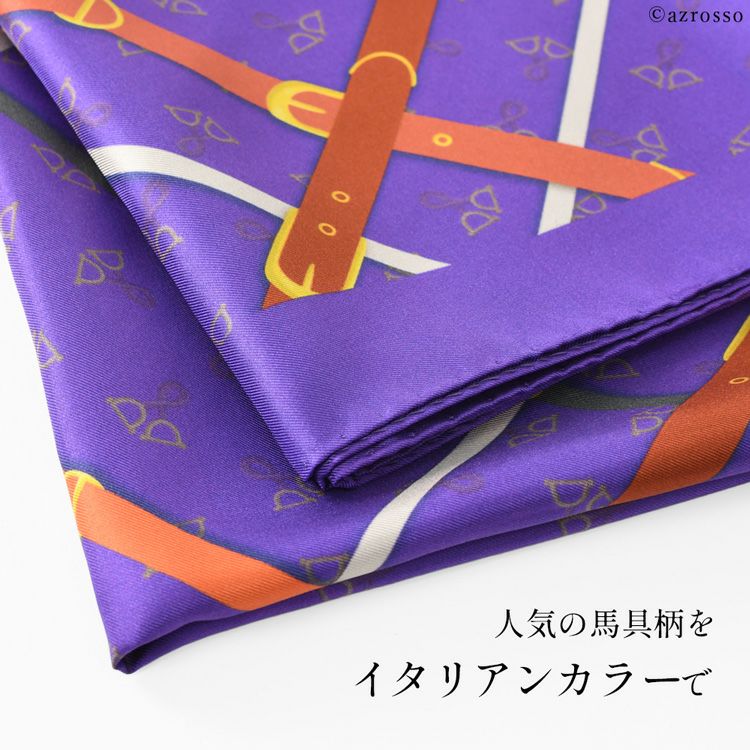 シルク スカーフ ツイル シルク100% 馬具柄 ベルト イタリア製 正方形 シルク100% 大判 90×90cm パープル 紫 フレイコモ