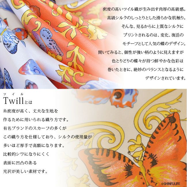 蝶々柄 シルクツイル フレイコモ スカーフ 正方形 大判 88x88シルク100% イタリア製 シルクスカーフ 巻き方や結び方を紹介 敬老の日 母の日 誕生日 プレゼント バタフライ ファルファーレ freycomo