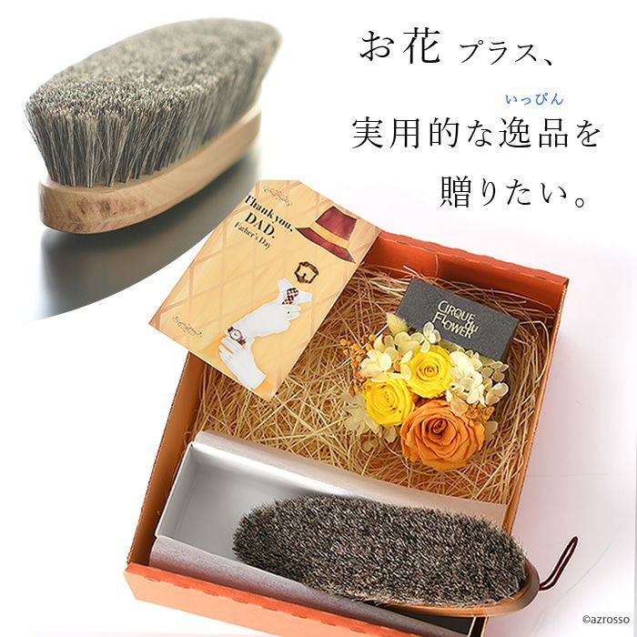 お花以外の実用ギフトとして、高級セレクトショップ、デパートでは入荷待ち、スタイリスト御用達の一生モノの洋服ブラシのセットをご用意しました。