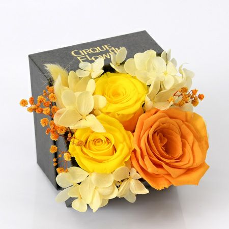 プリザーブドフラワーは、生花に特殊な加工を施すことで長期間に渡って花を楽しめるようにした、フランス生まれのお花。感謝の気持ちとともに半永久的に保存可能です。