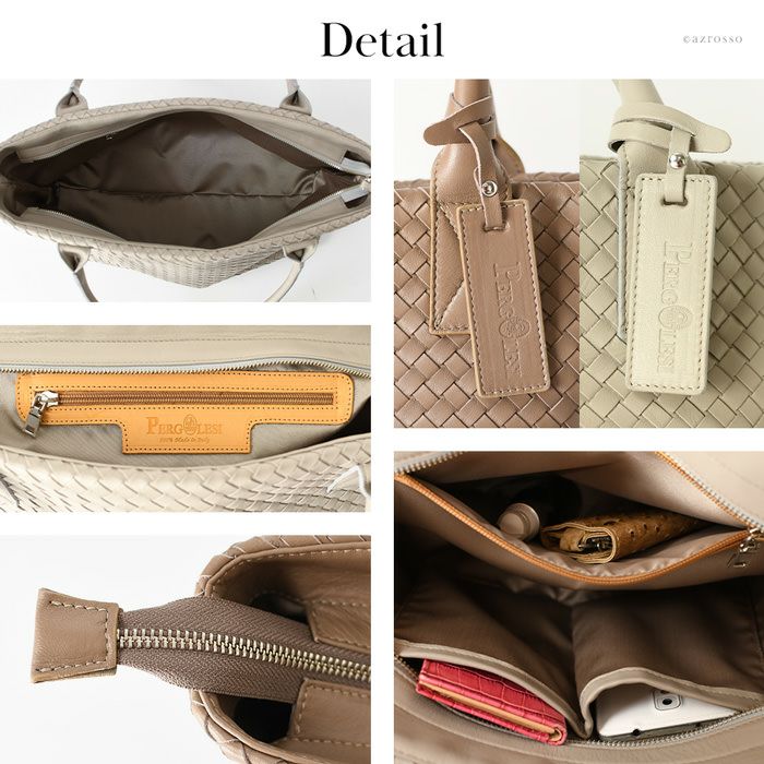 イントレチャート レザー トートバッグ ビジネスバッグ 本革 イタリア製 A4収納 きれいめ バッグ グレー ベージュ ペルゴレージ PERGOLESI