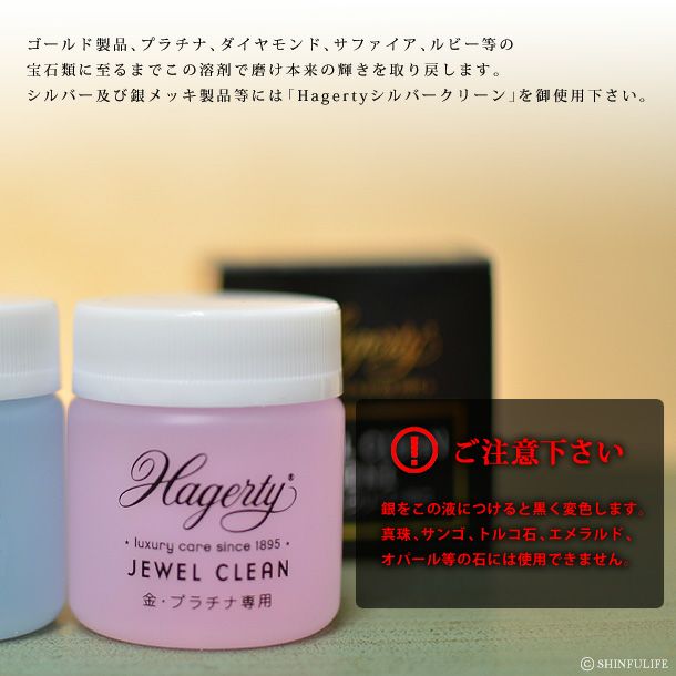 ハガティー社は100年以上、銀磨きやジュエリーケア製品の分野で世界のトップシェアを誇ります。製品を傷付けず、汚れだけを取り除くことにこだわり続け、その製品の品質の高さは世界のアクセサリーの一流ブランドや日本の造幣局などからも評価され、実際に使用されています。